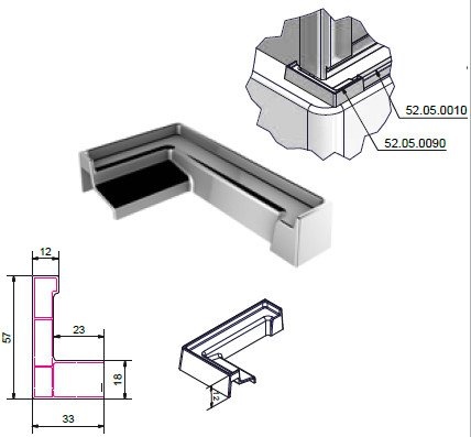Rohový spoj dlouhý pro profil proti přetečení vody