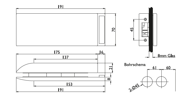 Protikus ke štítkům ze série Malaga na skleněné dvoukřídlé dveře