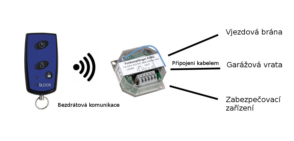 Rádiový přijímač obdrží signál z dálkového ovladače nebo čtečky Südmetall Ülock a odešle pomocí kabelu povel k sepnutí zařízení jiných výrobců.