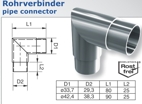 Rohový spoj trubky, 90°, nerez, ostrý