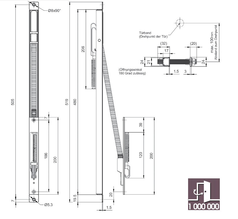 - Testováno pro 1 000 000 otevření bez přerušení kabelových vodičů.