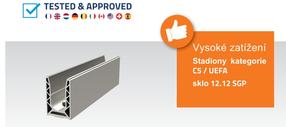 Vysokopevnostní kotvící profil pro celoskleněné zábradlí s certifikací až 10kN.