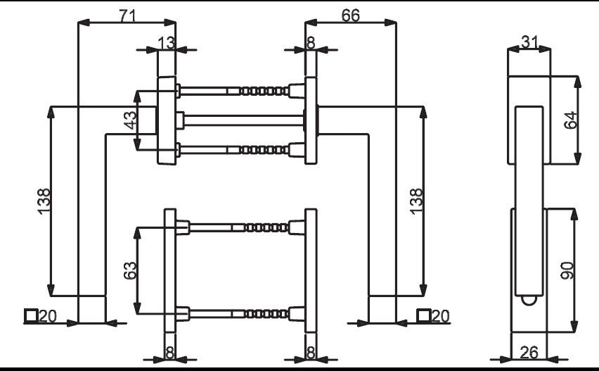 Klika na balkónové dveře, oboustranná Südmetall Galina II Square s nízkou klikou