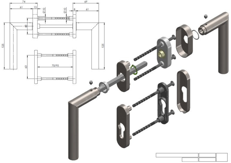 Klika s úzkou rozetou Südmetall Ronny II-R, TopSpeed, požární