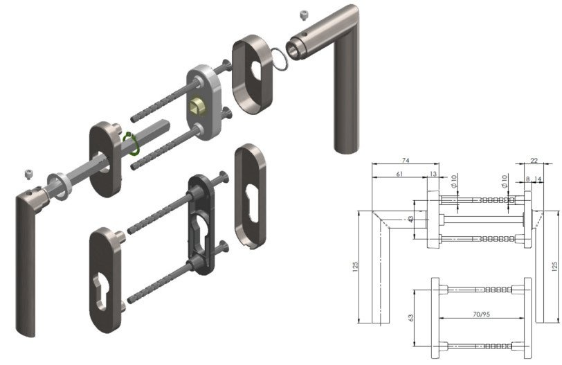 Klika s úzkou rozetou Südmetall Ronny II-R, TopSpeed, požární
