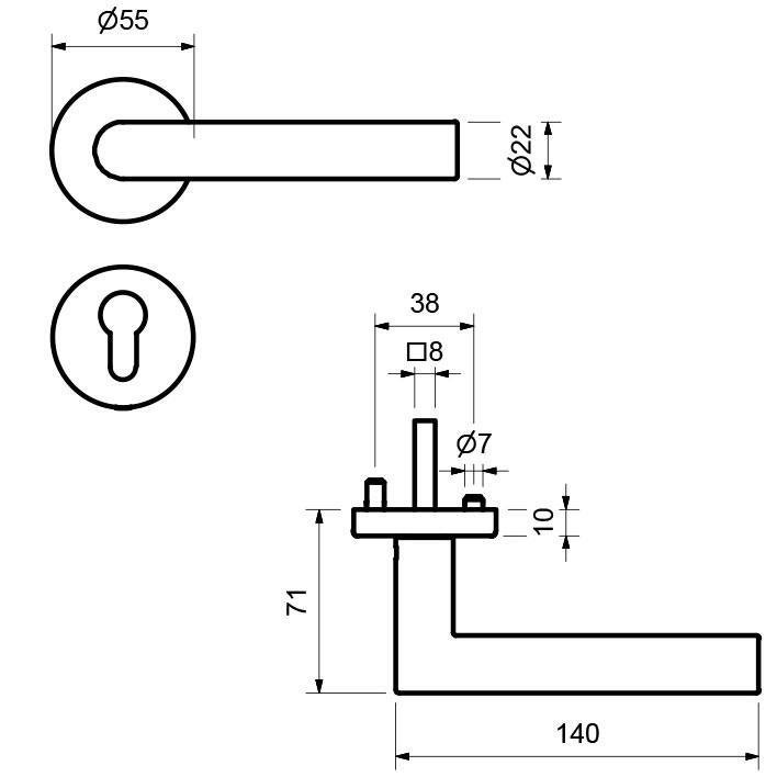 Klika s úzkou rozetou Südmetall Galina II-R, 22 mm, TopSpeed