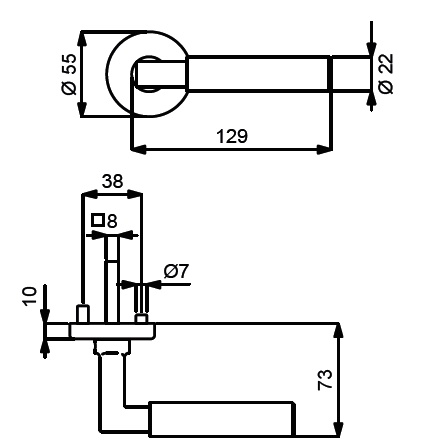 Sada kování obsahuje spojovací materiál a čtyřhran pro tloušťku dveří 38-42 mm.
