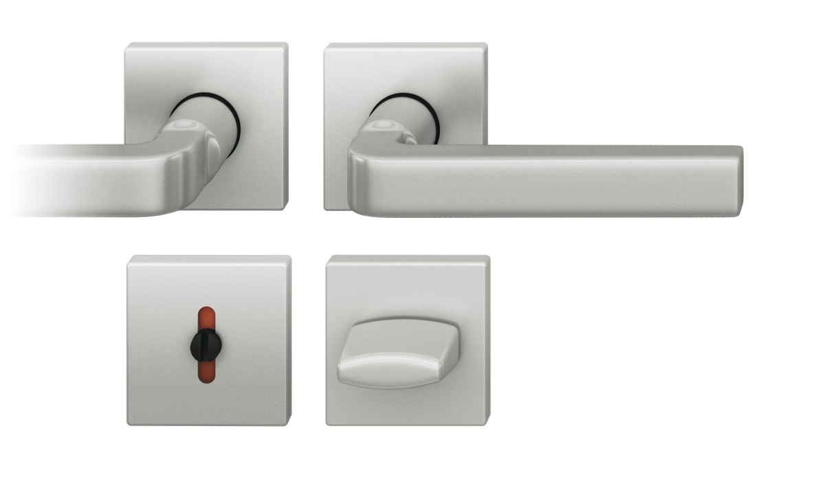 Kování FSB 12 1004 ASL Eloxovaný hliník, klika / klika, WC uzamykání, čtyřhran 6 mm, Čtvercová rozeta standardní