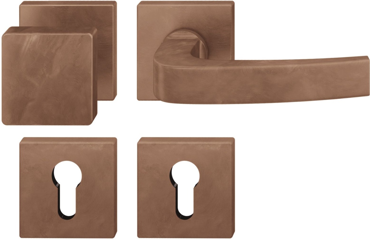 Kompletní sada kování na dveře včetně spojovacího materiálu a čtyřhranu .