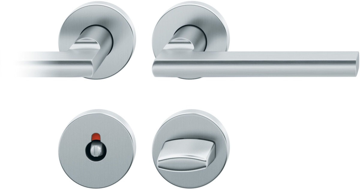 Kování FSB 72 1035 objektové Nerez kartáčovaná, klika / klika, WC uzamykání, čtyřhran 8 mm, Kulatá rozeta standardní, Levé provedení