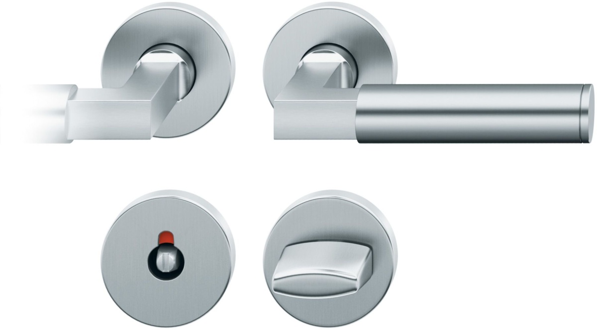 Kování FSB 72 1102 objektové Nerez kartáčovaná, klika / klika, WC uzamykání, čtyřhran 8 mm, Kulatá rozeta standardní, Pravé provedení