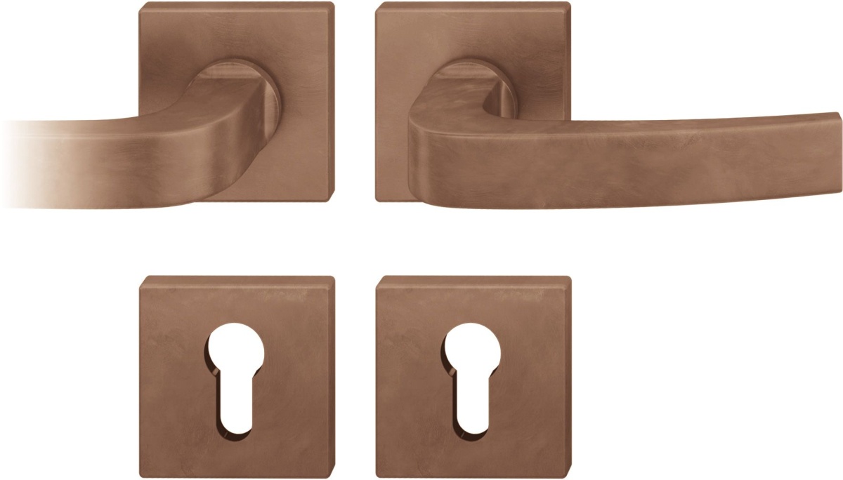 Kování FSB 72 1163 objektové Bronz masivní s patinou, klika / klika, Čtvercová rozeta standardní, Cylindrická vložka, Pravé provedení