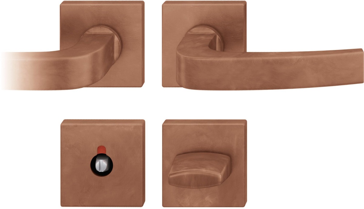 Kování FSB 72 1163 objektové Bronz masivní s patinou, Pravé provedení, WC uzamykání, čtyřhran 8 mm, Čtvercová rozeta standardní, klika / klika