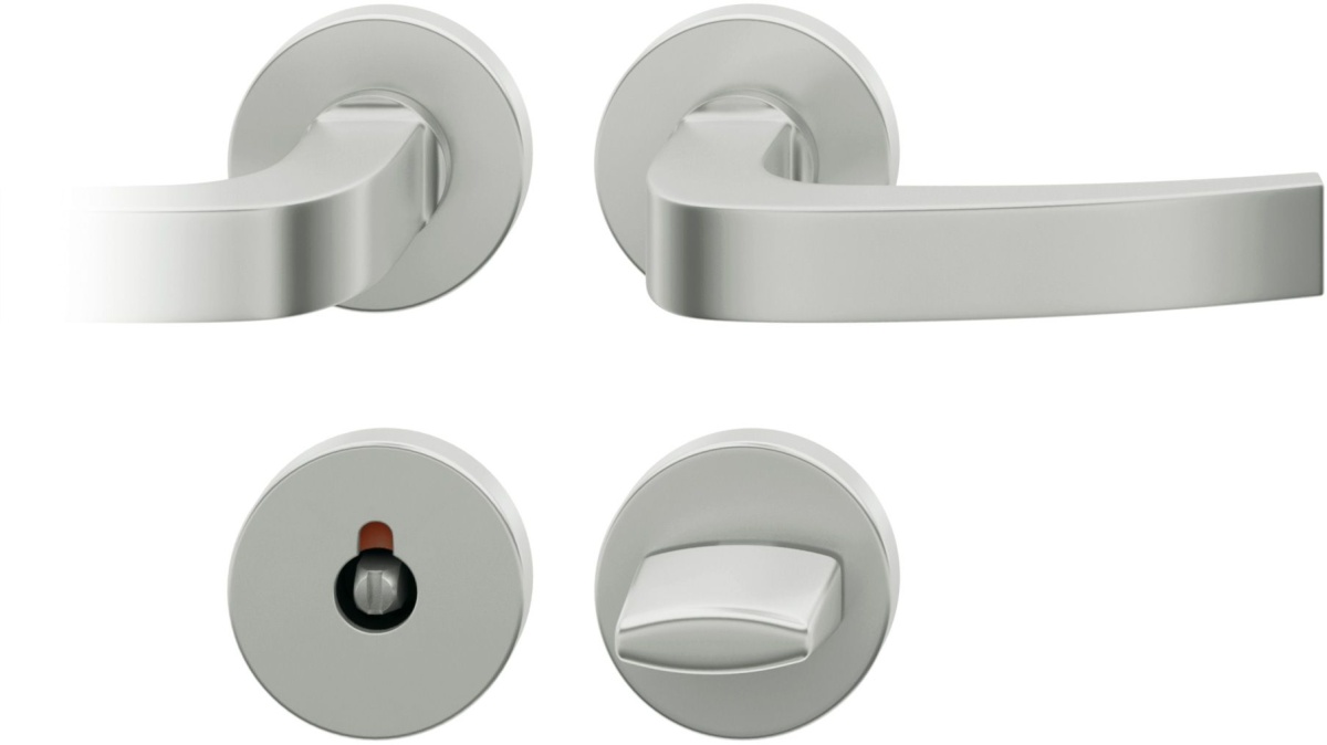 Kování FSB 72 1163 objektové Eloxovaný hliník, klika / klika, WC uzamykání, čtyřhran 8 mm, Kulatá rozeta standardní, Levé provedení