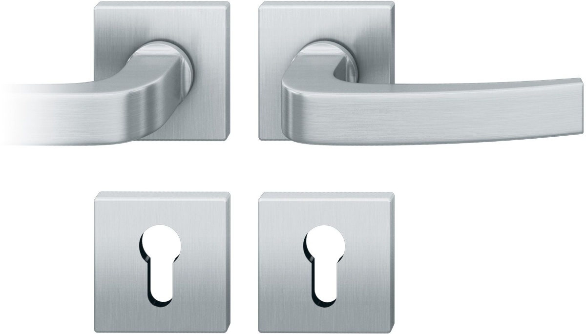 Kování FSB 72 1163 objektové Nerez kartáčovaná, klika / klika, Čtvercová rozeta standardní, Cylindrická vložka, Levé provedení