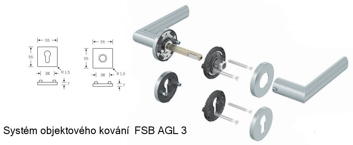 FSB 06 1035 odsazená klika, úzká rozeta hranatá