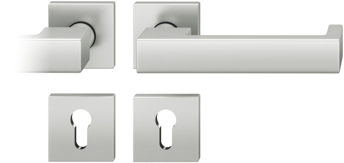 Kování FSB 79 1074 panikové Eloxovaný hliník, klika / klika, Pravé provedení, Čtvercová rozeta standardní, Dělený čtyřhran