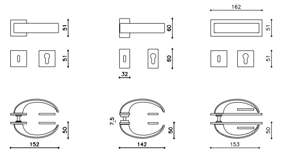 Sada kování lze objednat také bez spodních rozet pro klíč nebo s WC kličkou.