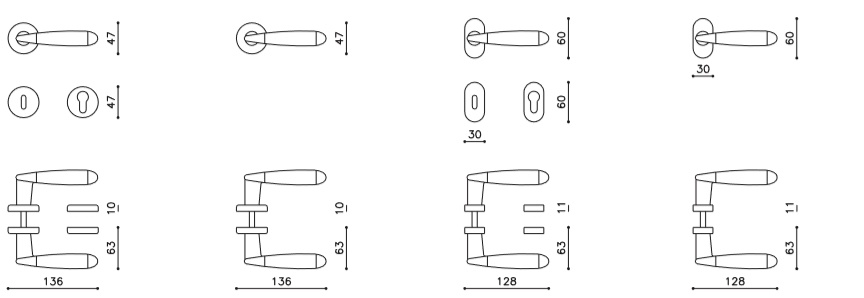 Sada kování lze objednat také bez spodních rozet pro klíč nebo s WC kličkou.