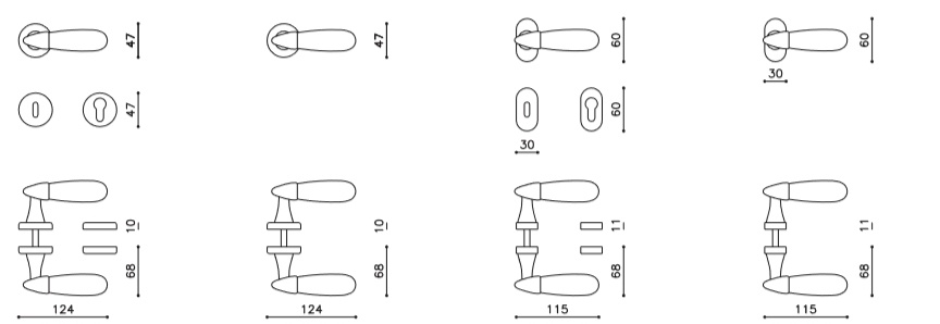 Sada kování lze objednat také bez spodních rozet pro klíč nebo s WC kličkou.