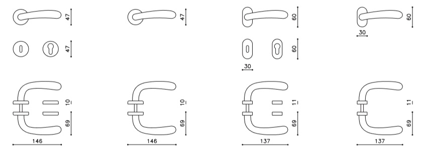 Na objednávku je možné dodat kování s úzkou rozetou pro hliníkové nebo rámové dveře.