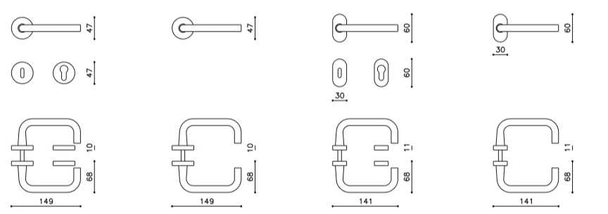 Na objednávku je možné dodat kování s úzkou rozetou pro hliníkové nebo rámové dveře.