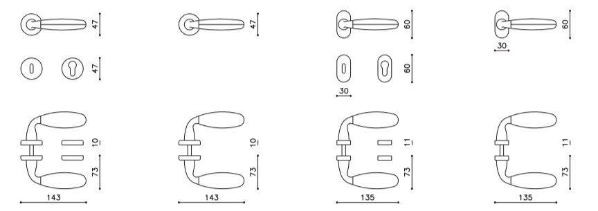 Sada kování lze objednat také bez spodních rozet pro klíč nebo s WC kličkou.