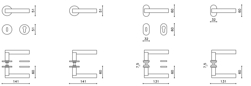 Sada kování lze objednat také bez spodních rozet pro klíč nebo s WC kličkou.