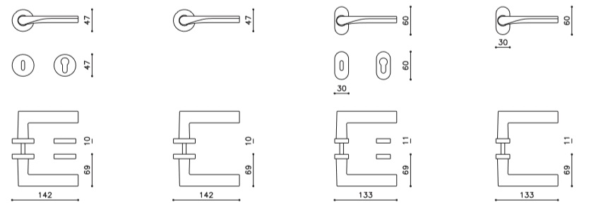 Sada kování lze objednat také bez spodních rozet pro klíč nebo s WC kličkou.