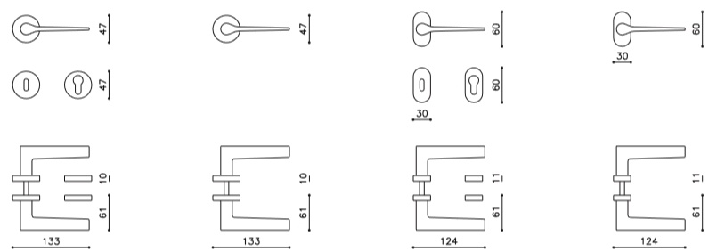 Na objednávku je možné dodat kování s úzkou rozetou pro hliníkové nebo rámové dveře.