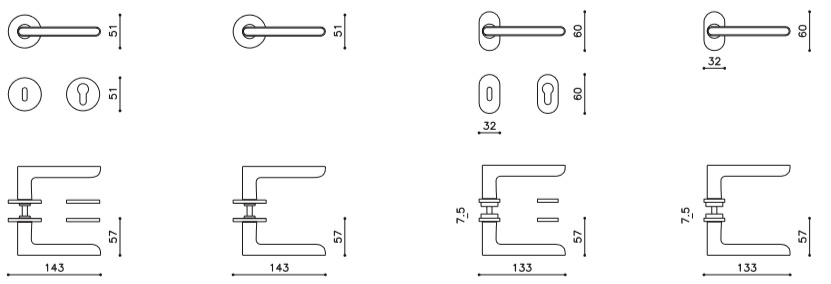 Sada kování lze objednat také bez spodních rozet pro klíč nebo s WC kličkou.