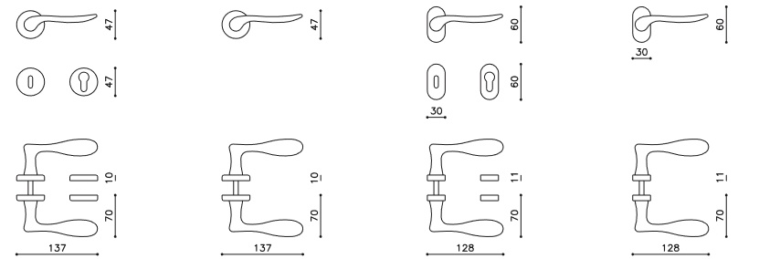 Sada kování lze objednat také bez spodních rozet pro klíč nebo s WC kličkou.