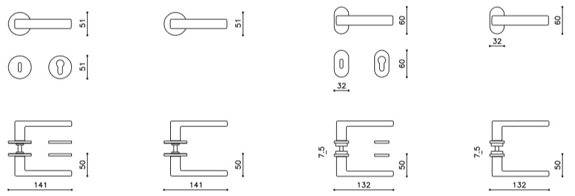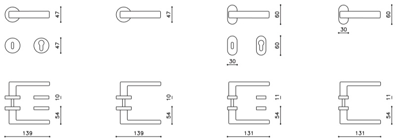 Sada kování lze objednat také bez spodních rozet pro klíč nebo s WC kličkou.