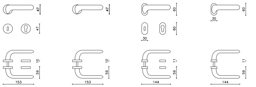 Sada kování lze objednat také bez spodních rozet pro klíč nebo s WC kličkou.
