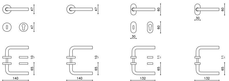 Sada kování lze objednat také bez spodních rozet pro klíč nebo s WC kličkou.