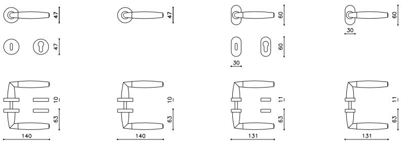 Sada kování lze objednat také bez spodních rozet pro klíč nebo s WC kličkou.