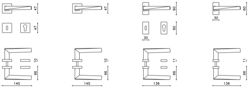 Sada kování lze objednat také bez spodních rozet pro klíč nebo s WC kličkou.