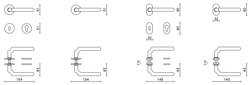 Sada kování lze objednat také bez spodních rozet pro klíč nebo s WC kličkou.