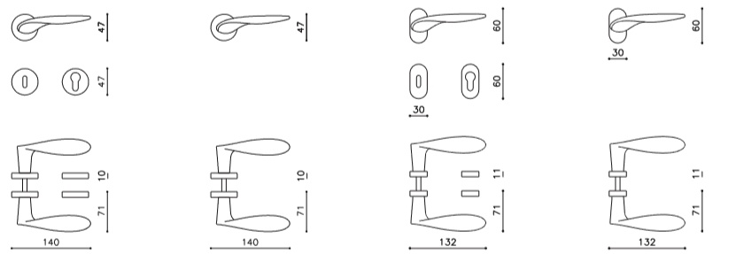 Sada kování lze objednat také bez spodních rozet pro klíč nebo s WC kličkou.