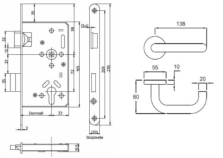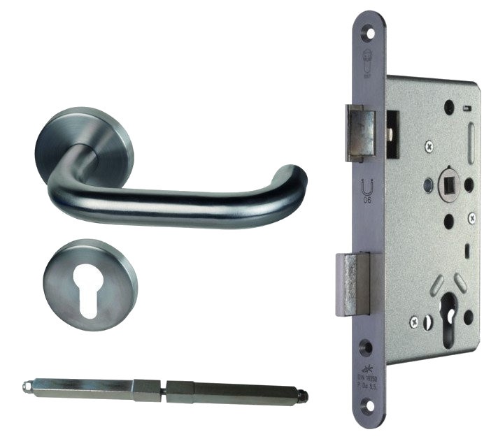 Sada obsahuje certifikovaný zámek + dveřní kliky a dělený čtyřhran.