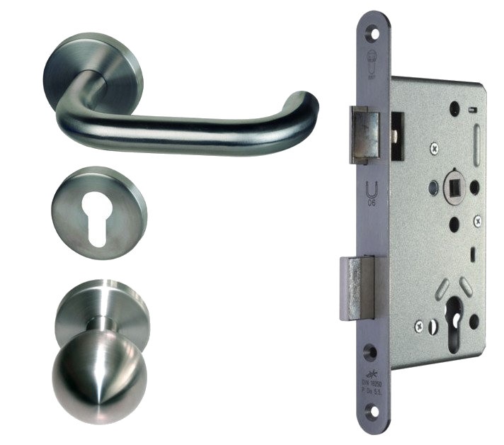 Sada obsahuje certifikovaný zámek + dveřní kliky, pevnou kouli a čtyřhran.