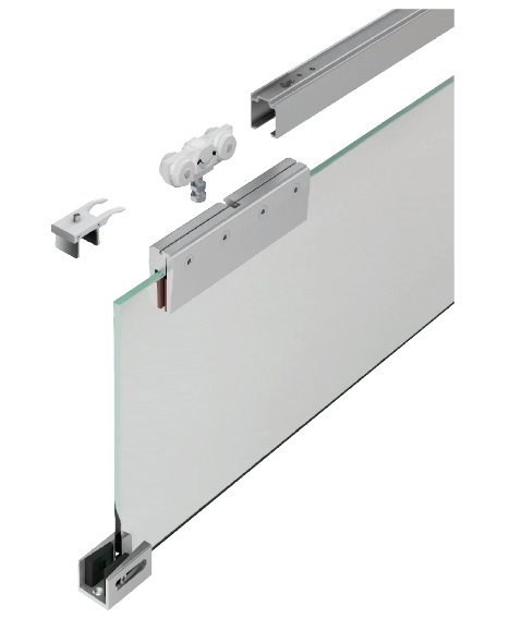Sada kování pro skleněné posuvné dveře s oboustranným pevným dorazem