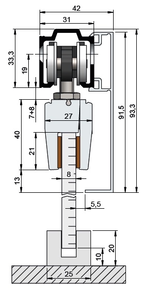 Sada kování pro posuvné dveře Südmetall Set B, 80 kg