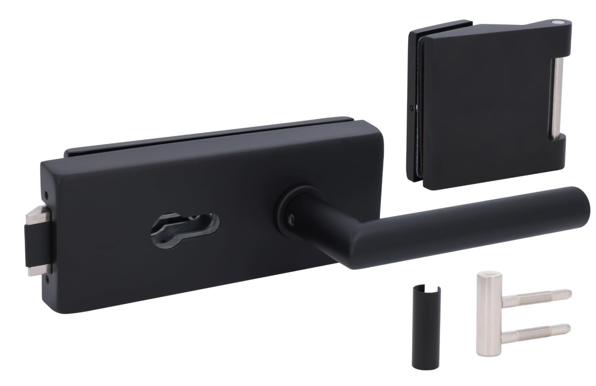 Kompletní sada kování pro skleněné dveře včetně integrovaného zamykání