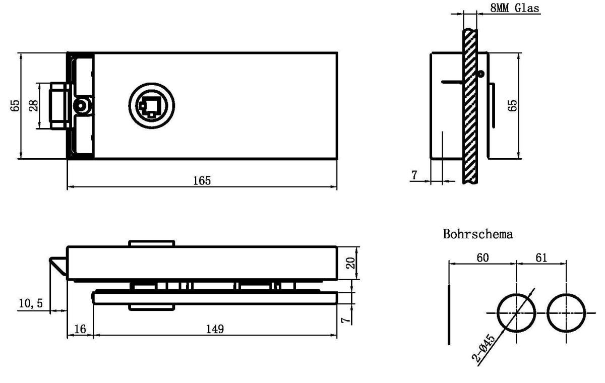 Kování je vhodné protloušťku skla 8 mm. (objednáním samostatné střelky lze i na sklo 10 mm)