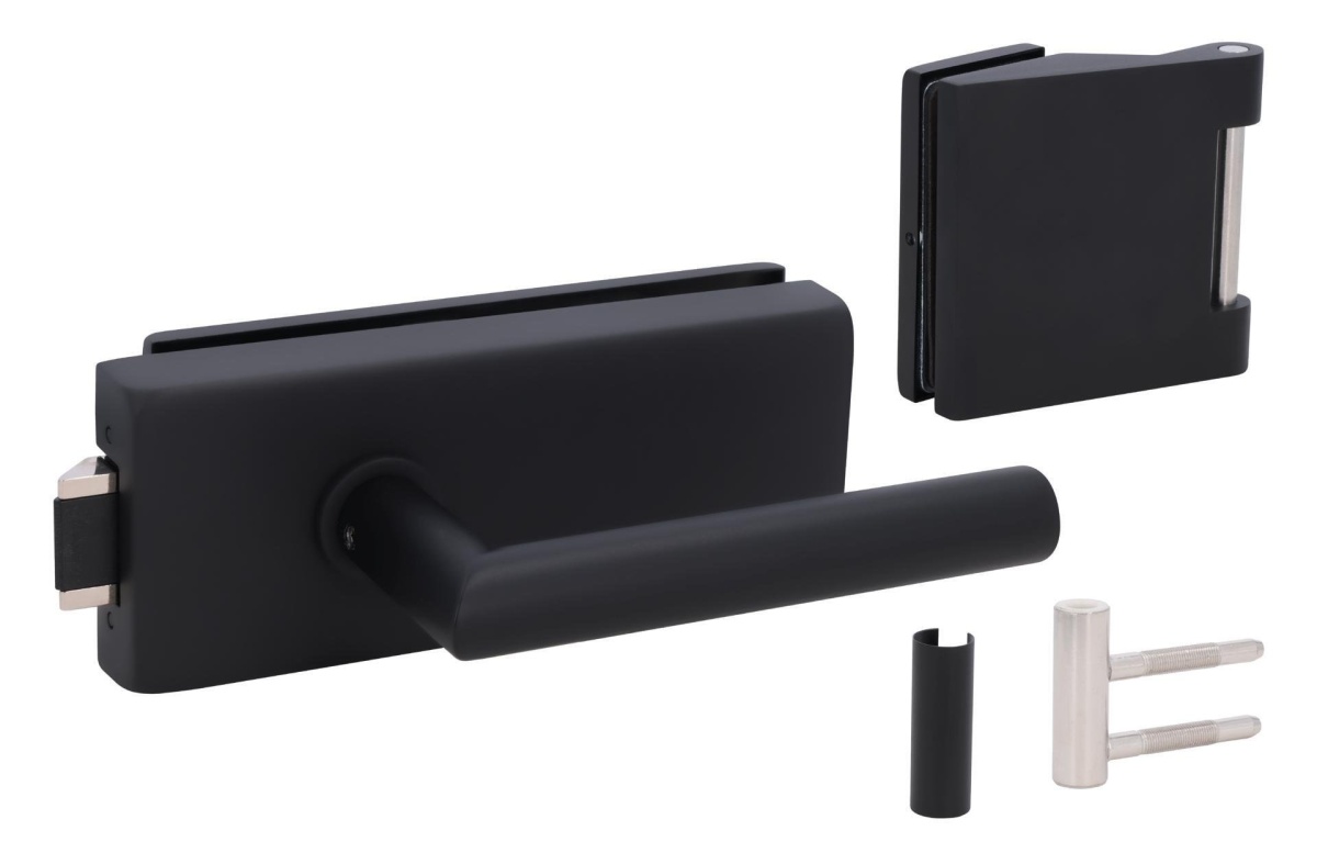Kompletní sada kování pro skleněné dveře včetně integrovaného zamykání