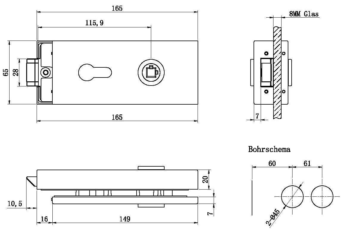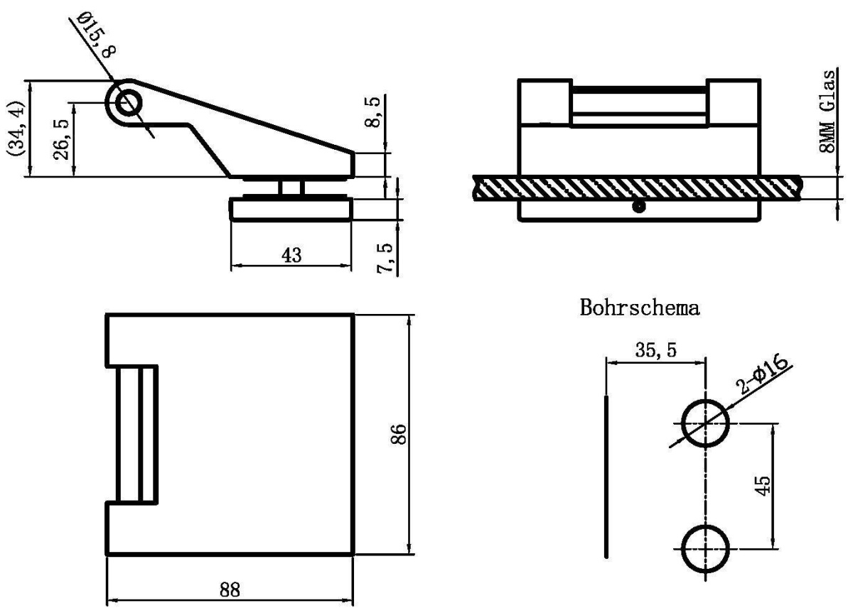 Kování je vhodné protloušťku skla 8 mm. (objednáním samostatné střelky lze i na sklo 10 mm)