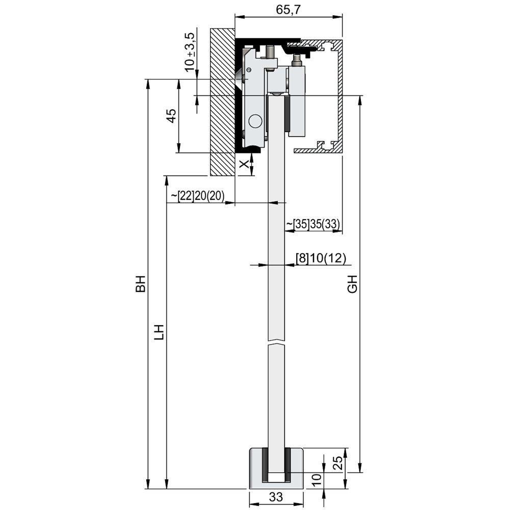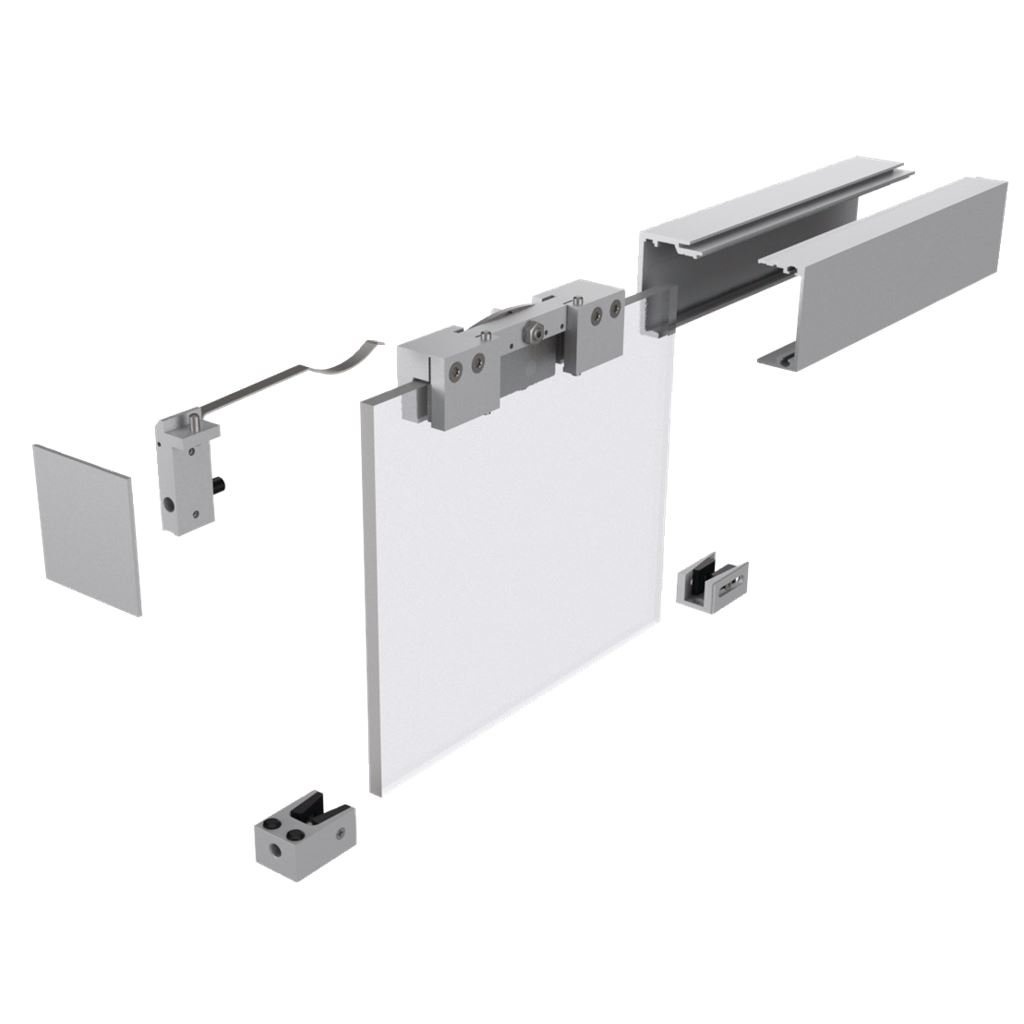 Sada kování pro skleněné posuvné dveře Südmetall Linz GT 150, objektové 2500 mm, Na zeď, Pevný dojezd
