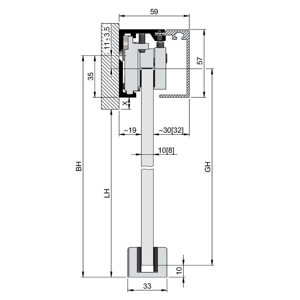 Sada kování pro skleněné posuvné dveře Südmetall Wien GT 60, objektové