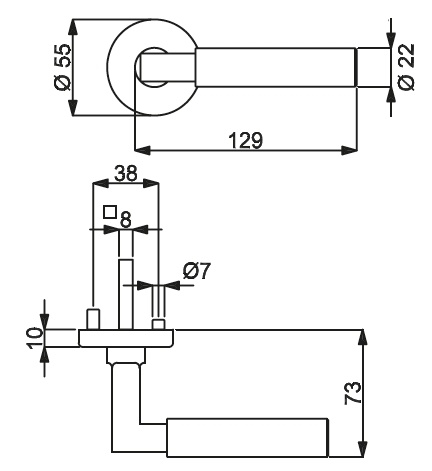 Sada kování obsahuje spojovací materiál a čtyřhran pro tloušťku dveří 38-42 mm.